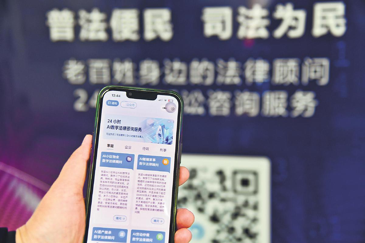群众扫描二维码,针对法律问题提问,AI智能助手马上就能解答。